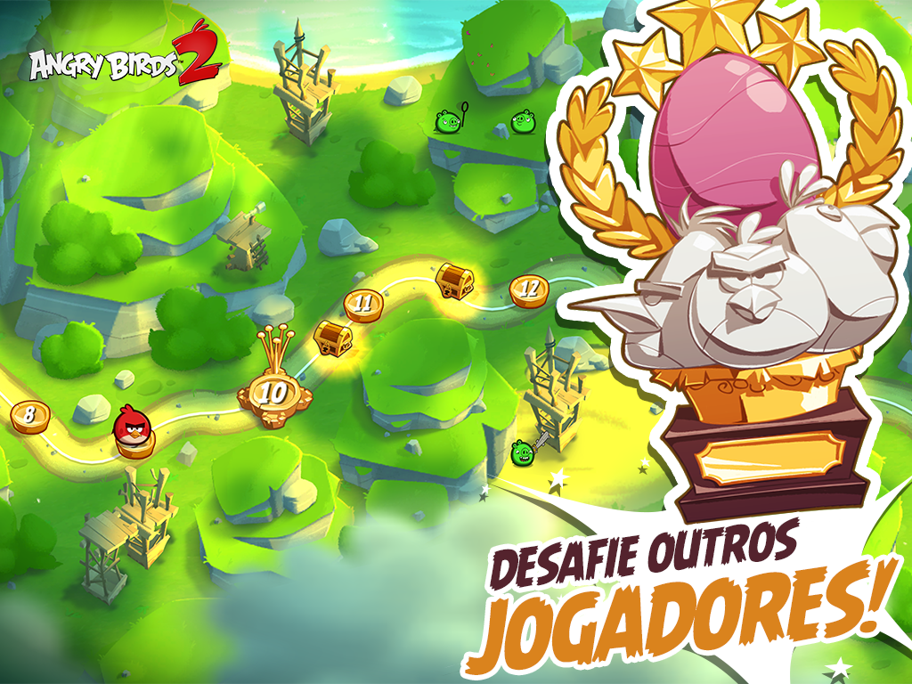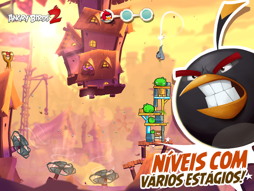 Você nunca viu a Ilha dos Porcos assim – níveis lindos de cair o queixo, cheios de plantas exóticas, detalhes diferentes e muito perigo. E como os porquinhos danados estão construindo suas torres bambas bem debaixo do seu bico, muitos níveis têm estágios múltiplos. Oh-oh!